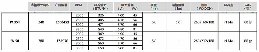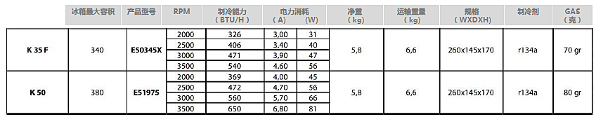 三类压缩机分别可选型号: